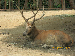 動物園佔地甚廣,較特別的動物有四不像及馬來漠,奈何天氣酷熱,不論女巫還是動物都沒啥勁頭,眾位獅子先生、小姐全沒有食慾,好不容易,其中一頭雌獅衝向我們,不消數秒就幹掉鮮肉,大搖大擺返回樹蔭下。勾留了大半天,決定回都心去。
